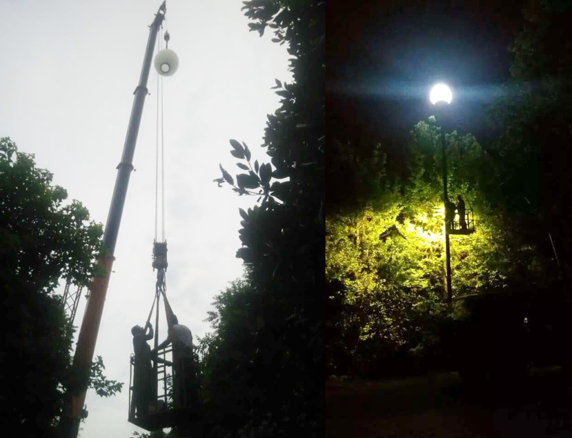 此次改造中所提供的產(chǎn)品為華體精心打造的“珍珠球”燈,該燈燈罩采用乳白色套瓷自潔玻璃制成,內(nèi)置120WLED燈帶燈桿采用升降插接的方式,總高度20米,可根據(jù)周圍環(huán)境來調(diào)整高度。 頂部光源采用特制的大口徑玻璃燈罩,中部采用外型定制的投樹燈。 另外,燈桿表面處理采用防腐,防水,防紫外線,防褪色的高質(zhì)量氟炭漆。整個(gè)燈型,簡(jiǎn)練,技術(shù)含量高。