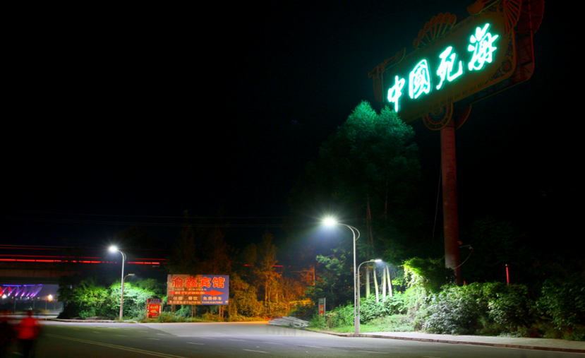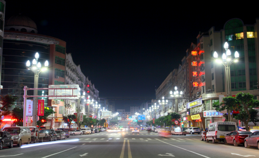 文化產(chǎn)業(yè)園濱江北路,位于中國(guó)死海景區(qū)門(mén)口路段,安裝了64套高低臂LED路燈。