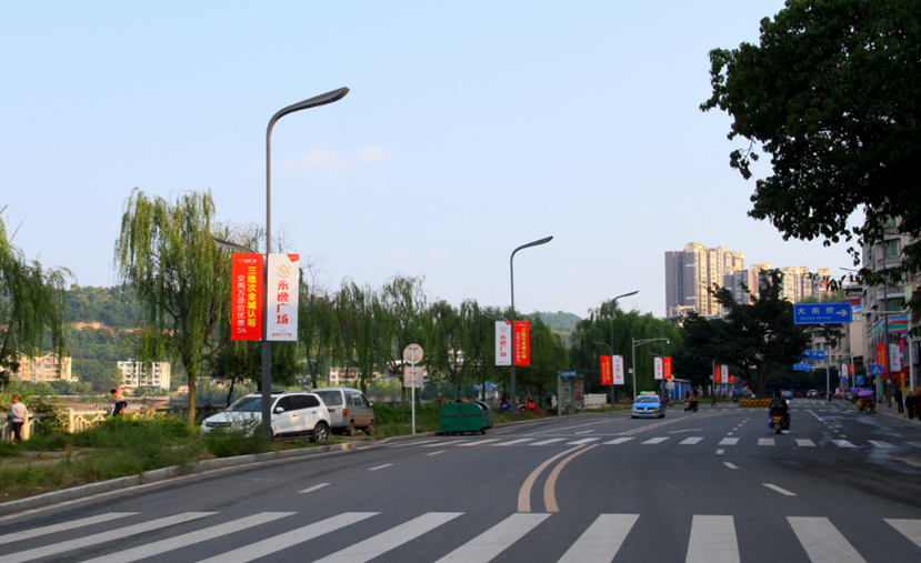 花園干道,作為連接老城區(qū)和新區(qū)的主干道,安裝了35套神暉燈。神暉燈整體使用具有現(xiàn)代感的顏色——灰色。卓筒井鹽是四川遂寧市大英縣筒井鎮(zhèn)的特產(chǎn),卓筒井是手工制鹽的活化石,被譽(yù)為中國(guó)古代第五大發(fā)明。因此,結(jié)合這種文化元素,在燈桿中段燈箱上印有大英卓筒井制鹽的鏤空?qǐng)D案,蘊(yùn)含了濃郁的地域文化。