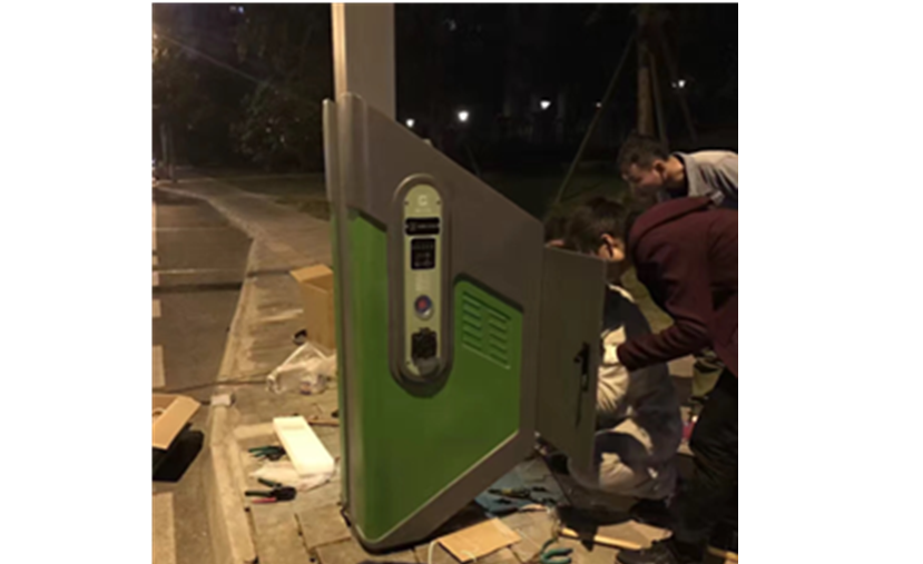 本次試點(diǎn)工作共安裝多功能智慧路燈兩柱。該燈以現(xiàn)代式的燈桿為主體,采用帶智能控制的LED照明,具有良好的節(jié)能減排作用。此外,本次安裝的智慧路燈巧妙的加載了新能源汽車充電、視頻監(jiān)控、環(huán)境信息監(jiān)測(cè)、WIFI覆蓋、手機(jī)補(bǔ)電及便民觸控屏等功能,實(shí)現(xiàn)了科技與設(shè)計(jì)的完美融合。