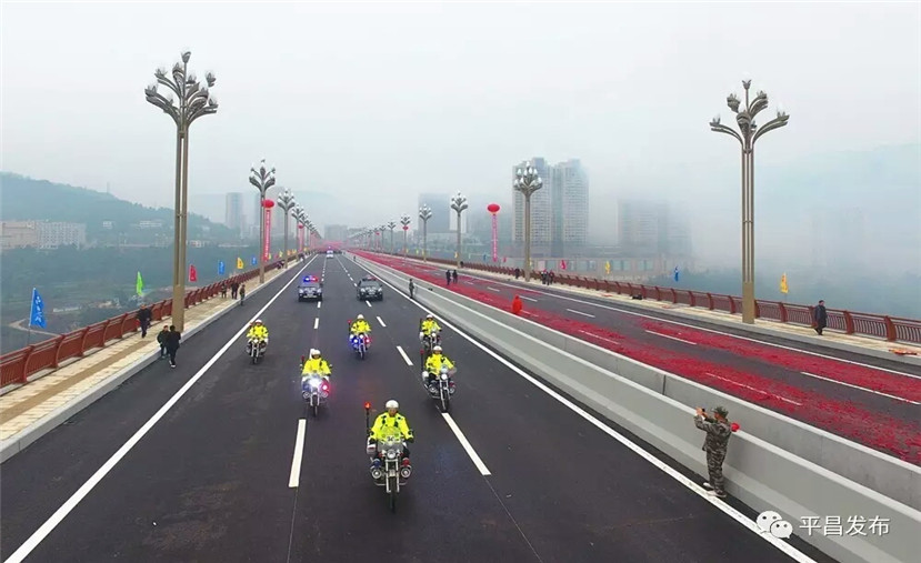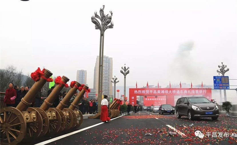 2017年1月16日,巴中平昌迎來(lái)盛大而隆重的黃灘壩大橋通車(chē)典禮。修建于2013年的平昌縣黃灘壩大橋,長(zhǎng)936米、寬33米、雙向六車(chē)道連續(xù)T梁鋼構(gòu)橋梁一座,概算總投資3.4億元。該橋既是鐵路平昌站連通巴達(dá)高速公路和縣城繞城路的樞紐工程,又是連接老城和新區(qū)的便捷通道,功能特殊,意義重大。