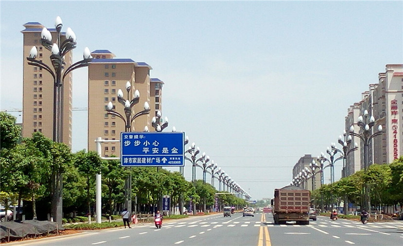 為深入貫徹常德市在十三五規(guī)劃綱要中提出的“一個中心、三個邁進(jìn)、五個常德”的發(fā)展戰(zhàn)略,加快城市提檔升級步伐,2017年4月,常德市津市九澧大道路進(jìn)行道路照明改造。四川華體照明科技股份有限公司根據(jù)道路的基本情況,設(shè)計并安裝了15.08米“八叉九火玉蘭燈”。