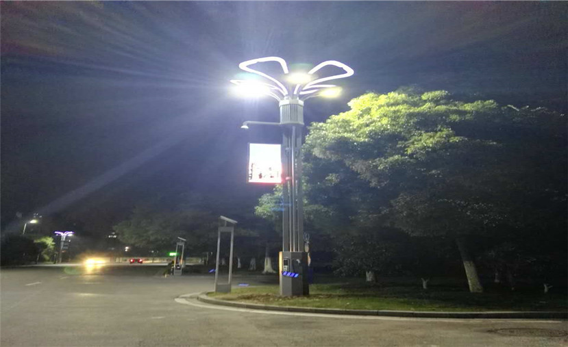 “現(xiàn)代銀杏”智慧路燈集智能照明、安防視頻監(jiān)控、無線城市WIFI覆蓋、環(huán)境監(jiān)測、LED顯示屏、電動汽車充電樁、USB插口充電等功能于一體。這為城市管理部門的管理工作,市民的生活提供了便利,蕪湖市民如同擁有一個貼身的城市管家,享受著信息時代的智慧生活。