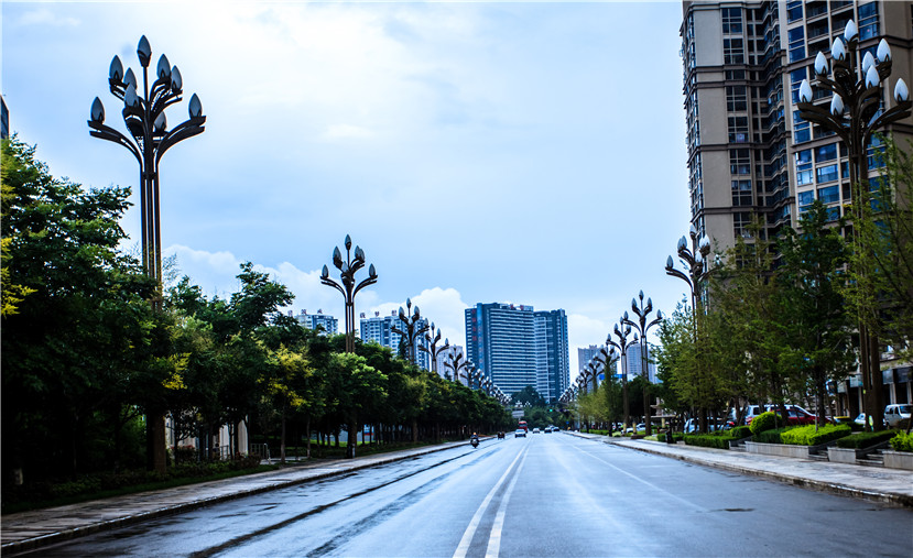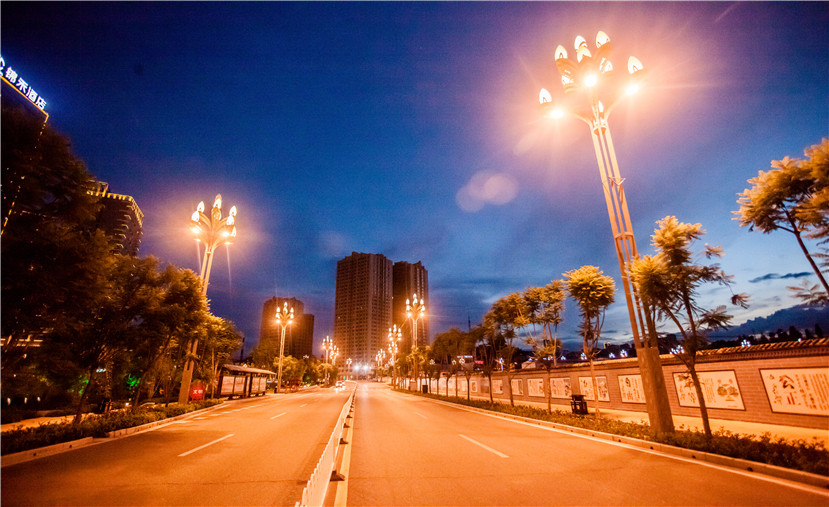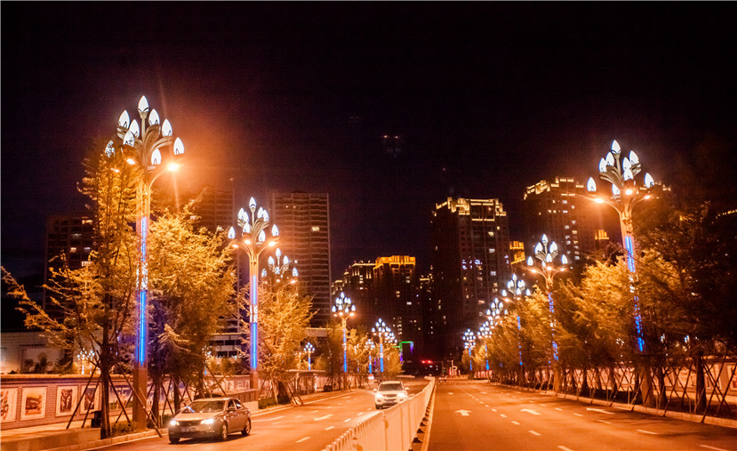 ??诮瓥|新區(qū)主干道的這些路燈,有“飛”一般的感覺