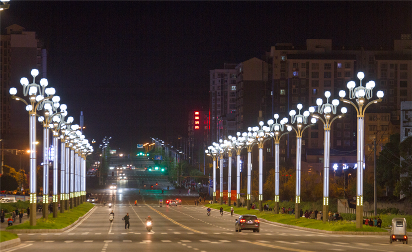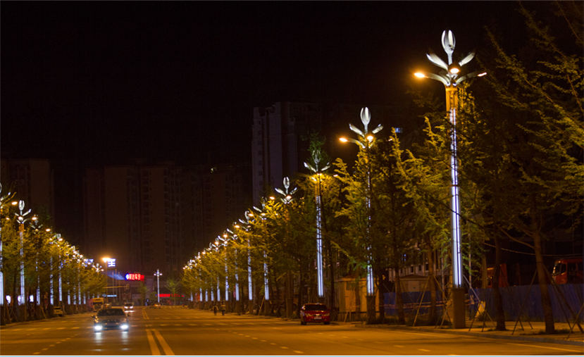 為進(jìn)一步完善城市照明效果,鞏固建設(shè)成果。營山縣公共事業(yè)管理局于2016年底至2017年初對民政局至一環(huán)路南北段以及芙蓉大道一段進(jìn)行了整體的道路照明路燈升級改造,四川華體照明科技股份有限公司根據(jù)兩條道路的基本情況,結(jié)合當(dāng)?shù)匚幕厣?,分別設(shè)計(jì)并安裝了春意盎然景觀燈和芙蓉中華燈。