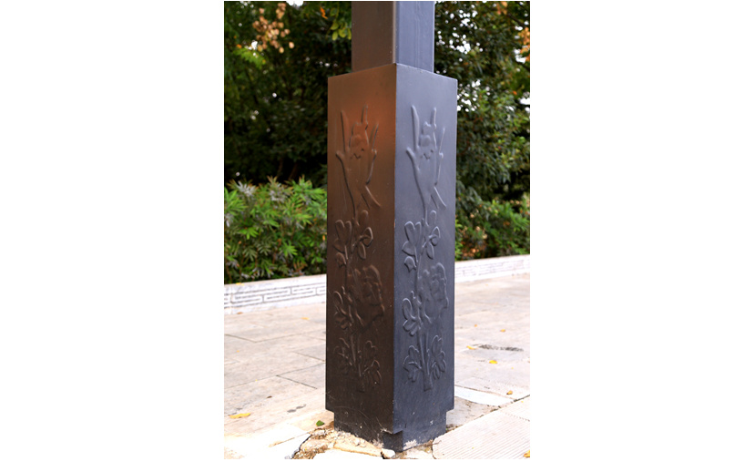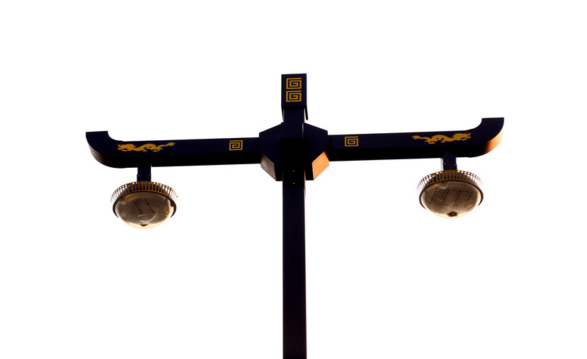 龍是中華文化里的主要圖騰、主要象征, 封建時(shí)代,龍是皇權(quán)的象征,皇宮使用器物也以龍為裝飾。設(shè)計(jì)者以龍為設(shè)計(jì)元素,燈型主體雕刻有兩頭欲破蒼穹的龍,營(yíng)造了一個(gè)創(chuàng)新、包容、獨(dú)立、奮發(fā)向上的精神。燈桿底部的燈箱上刻有牡丹圖案形象生動(dòng)地展示了龍門石窟的景區(qū)風(fēng)貌,龍燈燈桿裝飾七彩節(jié)日氛圍燈,使龍燈成為一道亮麗的風(fēng)景線,營(yíng)造出喜慶、熱鬧、祥和的景區(qū)氛圍。