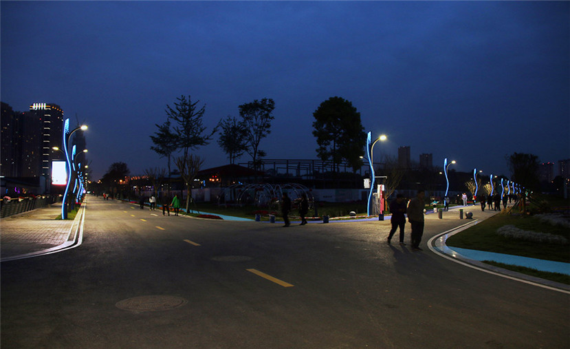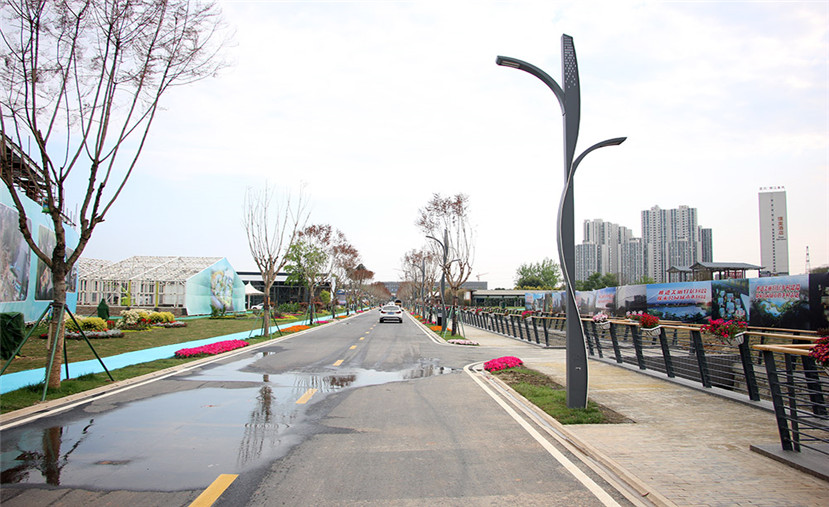 在改造升級過程中,四川華體照明科技股份有限公司(股票簡稱:華體科技 股票代碼:603679)為花鄉(xiāng)農(nóng)居提供了“流光”、“山水閣”兩款智慧路燈,安裝在園區(qū)四條道路上。