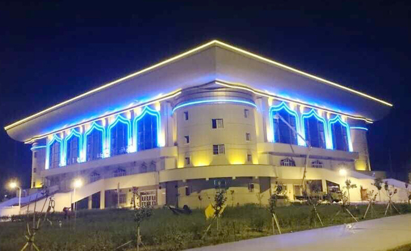 新疆阿圖什市,素有“無(wú)花果之鄉(xiāng)”美稱。為塑造城市新形象,華體照明受托承接了該市體育中心的建筑樓體亮化工程。在項(xiàng)目中,以突出亮化與城市環(huán)境地貌協(xié)調(diào)的理念,滿足創(chuàng)新與發(fā)展的需求,實(shí)現(xiàn)了表現(xiàn)手法藝術(shù)化、資源節(jié)約綠色環(huán)?;艄庠O(shè)備現(xiàn)代化的和諧總體效果。