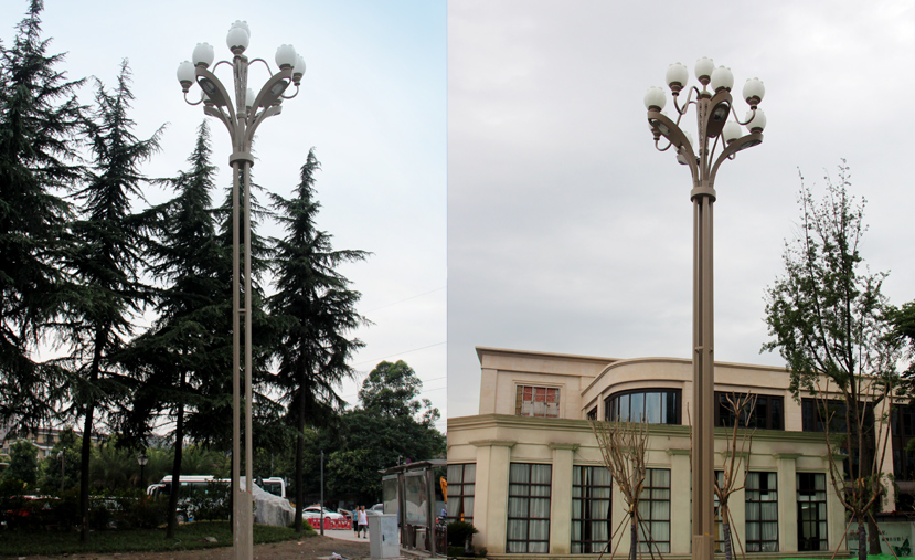 芙蓉中華燈,將成都市市花——芙蓉文化元素,運(yùn)用在多頭、植物造型燈桿的中華燈上。突破了傳統(tǒng)中華燈造型與照明功能,不能兼顧的缺陷,實(shí)現(xiàn)了功能照明和景觀照明完美結(jié)合,整燈呈現(xiàn)大氣、穩(wěn)重之感。波罩內(nèi)為我公司專屬配置的芙蓉?zé)舨ㄕ止庠?,綠色照明,節(jié)能環(huán)保。華燈初上,璀璨奪目的芙蓉中華燈與來(lái)往的車輛交相輝映,使成都市迎賓大道的“美麗指數(shù)”直線上升。