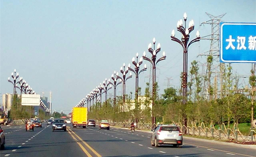 夾山大道,是石門縣縣城主干道之一。 為改善夾山大道目前照明效果不佳的現(xiàn)狀, 2016年1月,石門縣城區(qū)道路提質(zhì)改造項目(夾山大道)全面啟動,四川華體照明科技股份有限公司根據(jù)夾山大道的道路情況以及當(dāng)?shù)氐奈幕?,設(shè)計并安裝了“茶禪一味”八叉九火玉蘭燈。