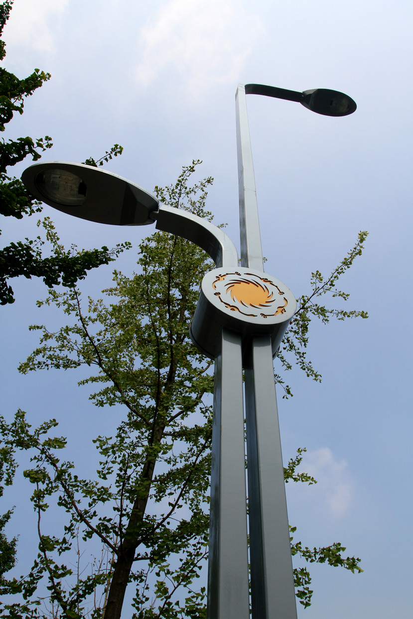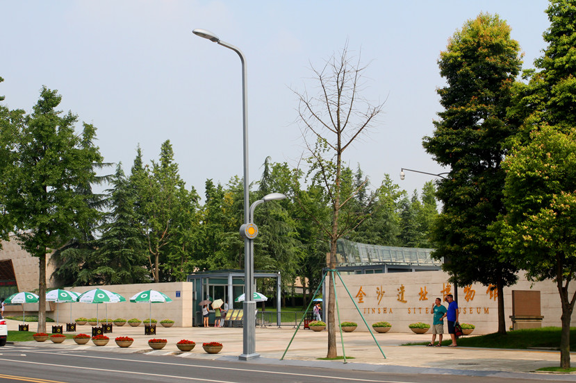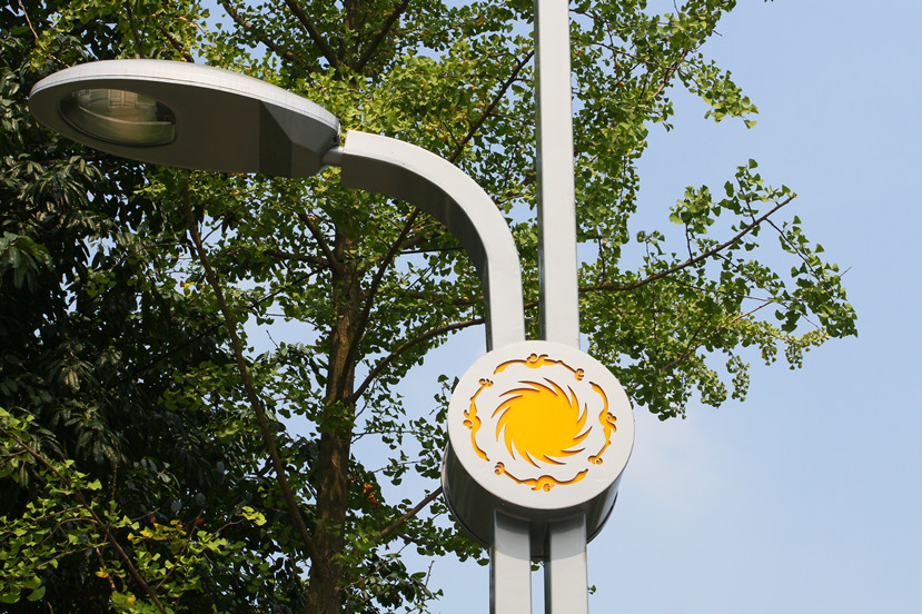 神暉,富有現(xiàn)代感,頗具特色。燈桿,使用具有文化色彩和現(xiàn)代感的顏色——灰色,在燈桿中段建立連接,加上成都獨(dú)有的內(nèi)透太陽(yáng)神鳥鏤空?qǐng)D案,蘊(yùn)含了濃郁的地域文化。