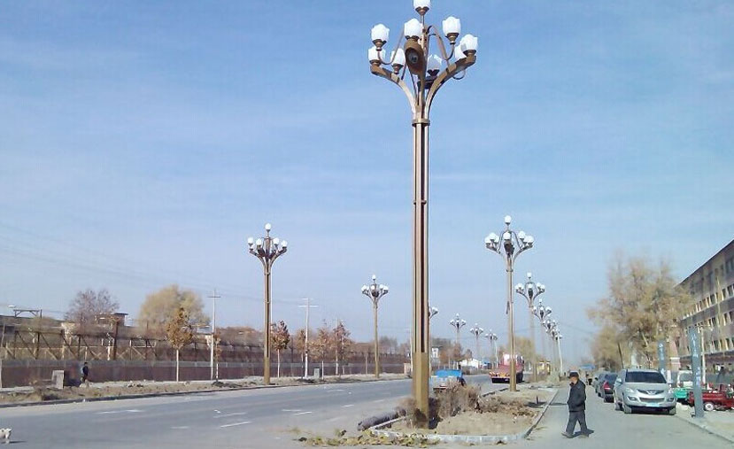 芙蓉中華燈,即“花燈”,指的是多頭,植物造型的燈桿。該款燈在傳統(tǒng)中華燈的基礎(chǔ)上進(jìn)行了改良,保留其神韻,加入新的元素,巧妙的運(yùn)用花瓣的形式,實現(xiàn)了燈桿與燈頭的實體鏈接。華燈初上,幸福路上芙蓉花開,給市民夜間出行帶來便利,營造出溫馨浪漫的氛圍,照亮阿拉爾人民的幸福生活。