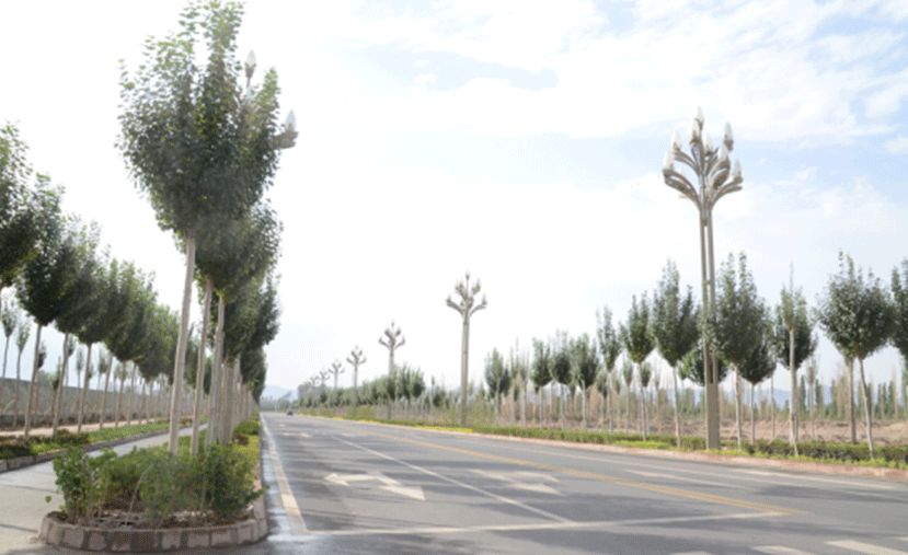 ??诮瓥|新區(qū)主干道的這些路燈,有“飛”一般的感覺