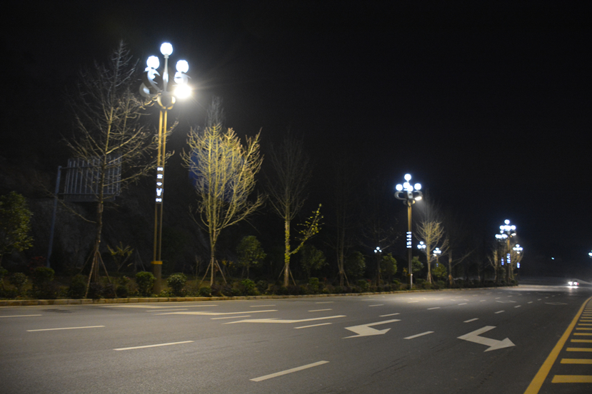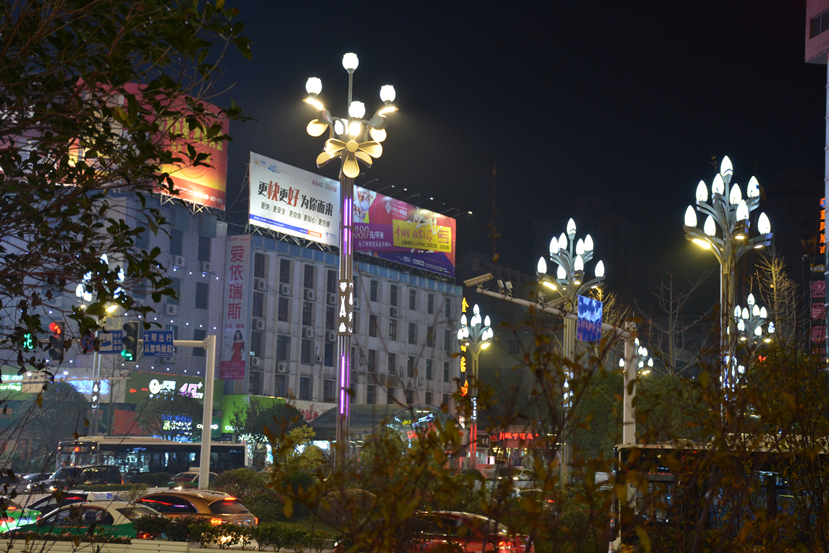 改造中使用的路燈,皆攫取了這一系列的元素,通過工業(yè)設(shè)計(jì)加工,形成了一盞盞頗具審美價(jià)值的道路燈,讓市民好不贊嘆。如玉蘭燈的燈桿上加入了吹蘆笙的小伙兒和斗牛的圖案式文化符號(hào);牡丹棲鳳的燈頭設(shè)計(jì)為“鳥宿牡丹”的造型,將燈桿底座設(shè)計(jì)為苗族人日常生活中頻繁接觸的花瓶狀,并在燈桿底座加上茶花圖案,如同綻放的牡丹,寓意盛大繁榮、生機(jī)勃勃之意; “金孺牛”、“蝶翼”直接以蝴蝶和牛作為原型,進(jìn)行設(shè)計(jì),讓燈頭看上去如同一只蝴蝶在綻放光芒、翩翩起舞,或如同牛角在奮力拼搏,追逐勝利,贏在未來……