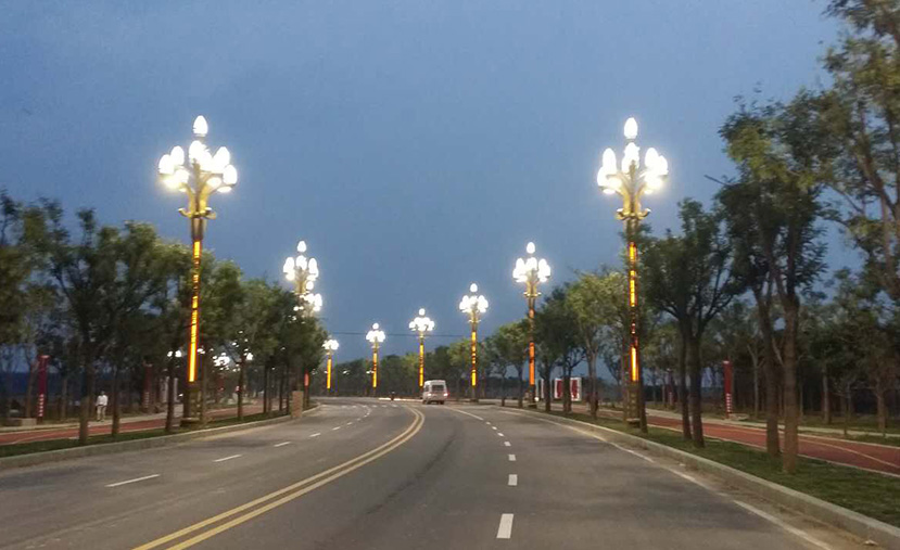 華燈初上,燈光熠熠。景區(qū)內(nèi)景觀大道“鳳凰繞梁”的打造,呈現(xiàn)出物與自然的和諧畫卷,大美勝景彰顯出美麗同州的獨特魅力。燈具中“鳳凰”元素的使用,體現(xiàn)了對大荔人民祥瑞、幸福、安康的美好愿景。