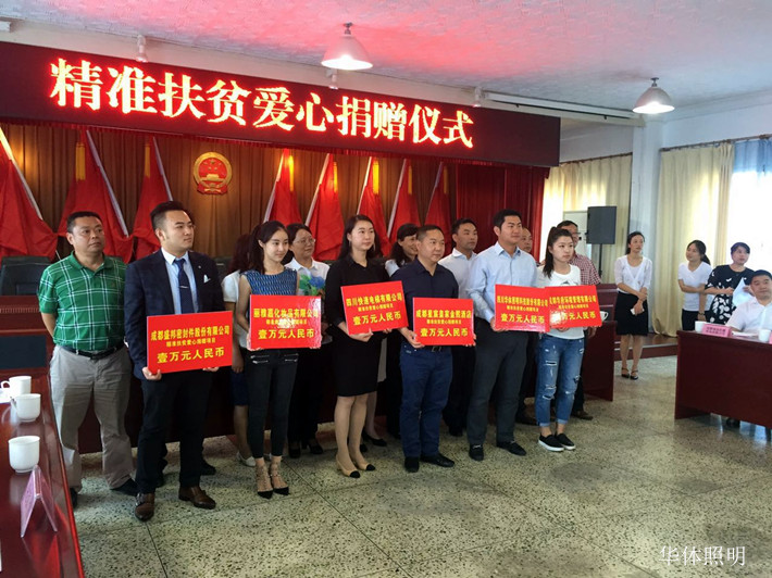 2016年5月20日上午,雙流區(qū)(公興)“精準(zhǔn)扶貧愛心捐贈”儀式在公興街道辦事處舉行,區(qū)委常委、統(tǒng)戰(zhàn)部部長、總工會主席蔣莉,區(qū)委統(tǒng)戰(zhàn)部常務(wù)副部長潘萬春,區(qū)委統(tǒng)戰(zhàn)部副部長、區(qū)工商聯(lián)黨組書記杜小娟等領(lǐng)導(dǎo)出席儀式。四川華體照明科技股份有限公司董事長兼總裁梁熹受邀參加捐贈活動。據(jù)悉,此次捐贈活動共籌集善款32萬元,區(qū)紅十字會將設(shè)立專門賬戶進(jìn)行管理,確保精準(zhǔn)放款。