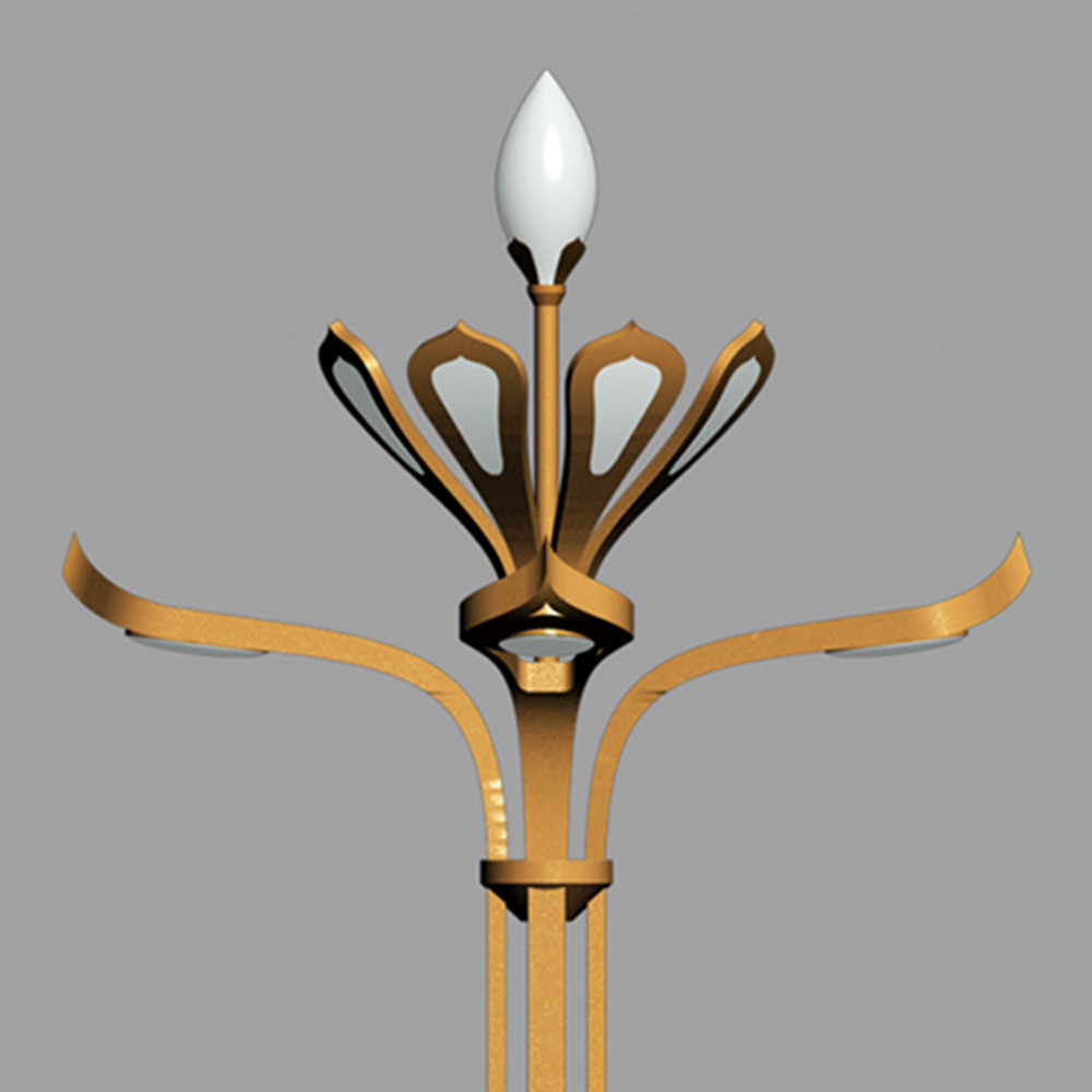 燈型整體造型以蓮花含苞待放的外形為設(shè)計(jì)元素,結(jié)合華燈造型特征,達(dá)到功能與景觀照明為一體的戶外燈具;