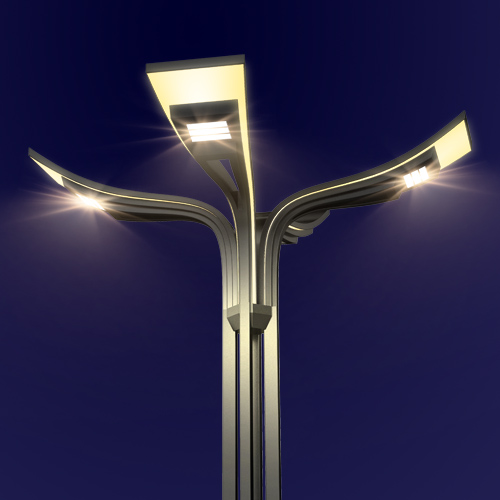 燈型設計以簡潔流暢的線條為設計元素,結合現(xiàn)代簡潔的設計手法,提取流暢的線條,燈臂如展翼翱翔的翅膀,寓意城市蓬勃發(fā)展、日甚一日。