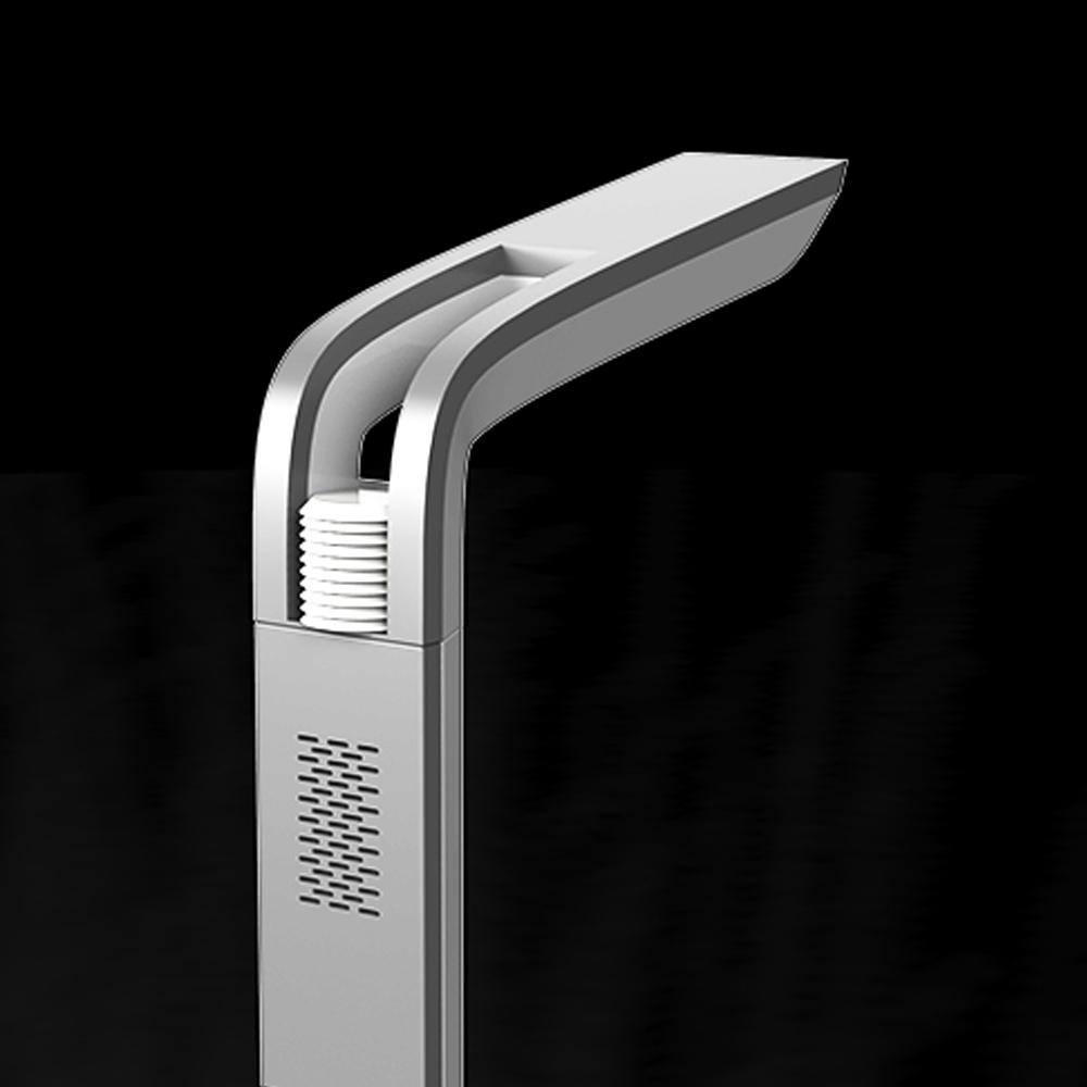 此灯设计理念是取“银河”汇聚包容万象之意,功能涵盖面了基站、摄像头、应急广播、环境监测、显示屏、充电桩等,能根据智慧城市建设的需求定制组件加载方案;